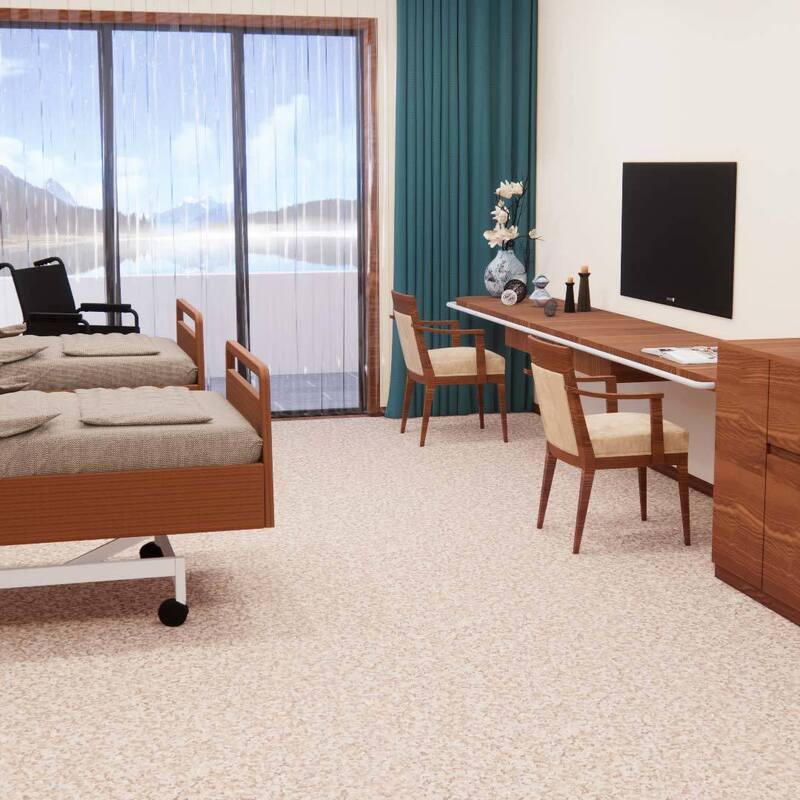 ✔️Безопасность и комфорт: Нескользящие текстуры и свойства снижения шума улучшают восстановление пациентов, а амортизирующая поддержка снижает усталость персонала.