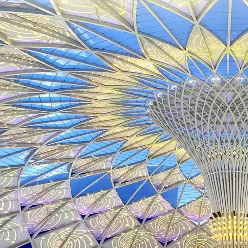Tensile membrane structures consist of high-performance membrane, steel cables, and supports, stabilized by pre-tension. Ideal for large-span construction, they are practical, innovative, and aesthetic. With easy construction, fast installation, light weight, high strength, safety, and durability, they are a highly expressive modern architectural form.