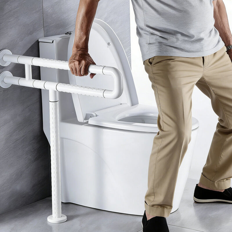 U-образный двуслойный поручень для туалета имеет нейлоновое внешнее покрытие и сердечник из высококачественного алюминиевого сплава, с нескользящей текстурой, приятный на ощупь и обладающий антибактериальными свойствами, что делает его идеальной безопасной опорой для дома, больницы, дома престарелых и различных общественных доступных ванных комнат.